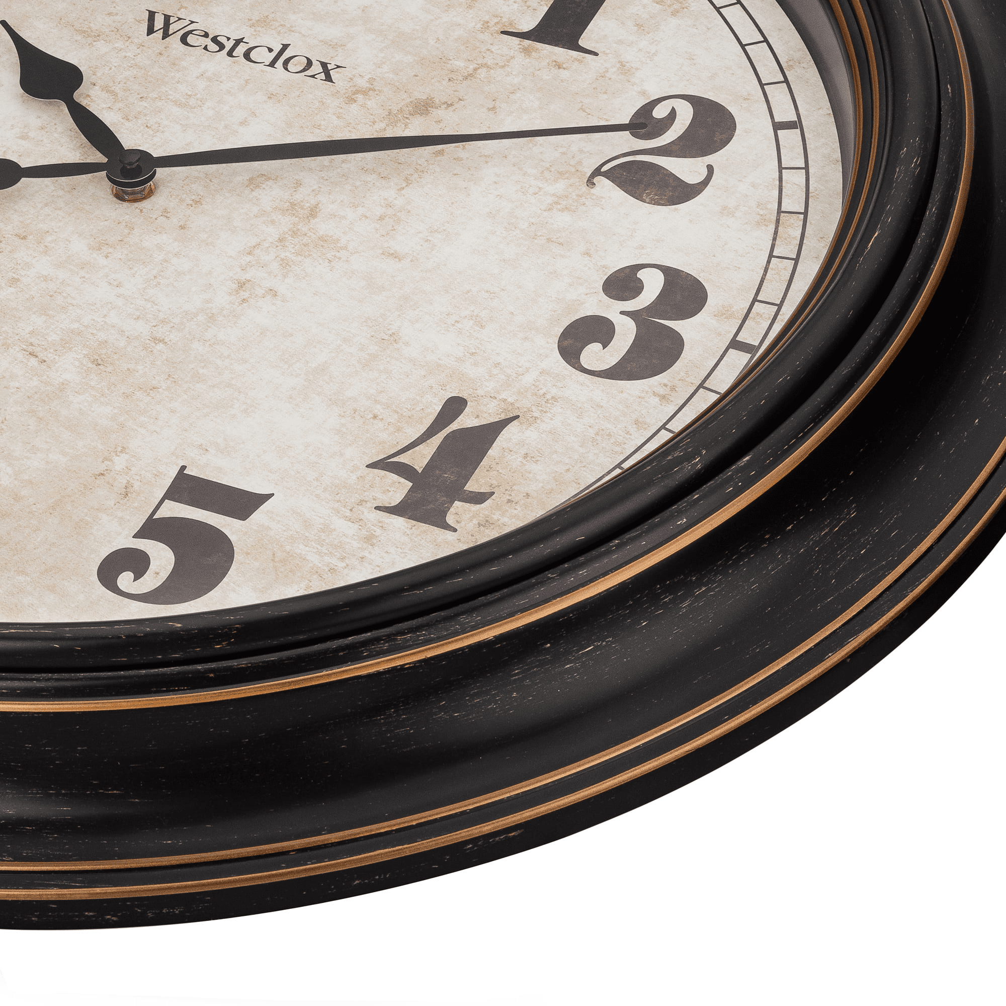 Add some vintage charm to any room in your home with the westclox 24-inch classic vintage style oversized wall clock. This clock features a bold frame with a charming antique finish. It also features classic arabic numerals and minute markings for enhanced readability. Hang the westclox 24-inch classic vintage style oversized wall clock in the living room to add some personality, try it in a guestroom or bedroom to liven up your decor, or place it in the entryway to make a statement.